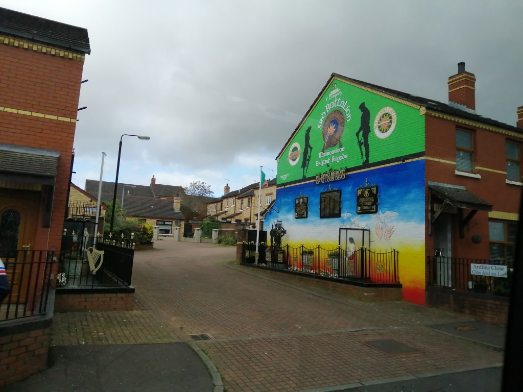 There are multiple murals in every Northwest Belfast neighborhood. Main streets, cul de sacs, small alleyways, cross roads… all provide potential messaging and community affiliations. The Irish Republican National CongressAt The Crown Pub. “In my country we go to prison first and then become president”. Resilient beauty.Phryne and I got a visitor; she literally climbed up the side of the house and came in through the open window. The view from my bedroom window never gets old.